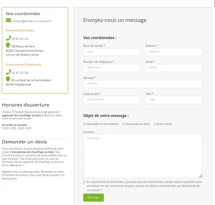 - Mettre en avant la gamme de solutions de chauffage granulés et bois de Chaleur Ô Naturel de manière esthétique et convaincante sur le site web.